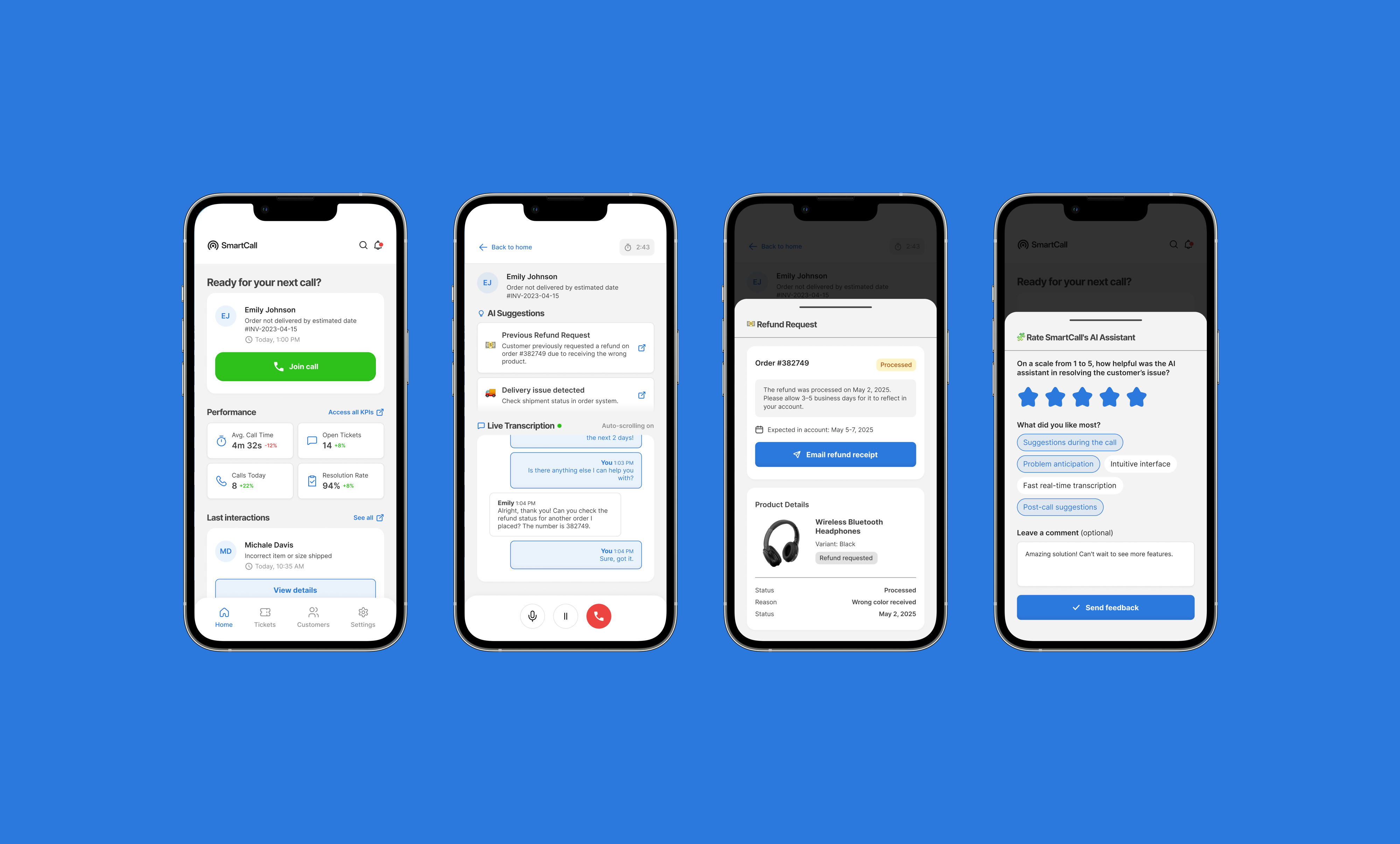 If we develop a mobile-first support app that enhances live calls with AI-powered tools, including pre-call customer insights, real-time transcription, contextual smart suggestions, and automated follow-up options, then we can reduce average call duration by 20 - 30%, improve follow-up consistency by 40%, and increase customer satisfaction by 15 - 25%.
